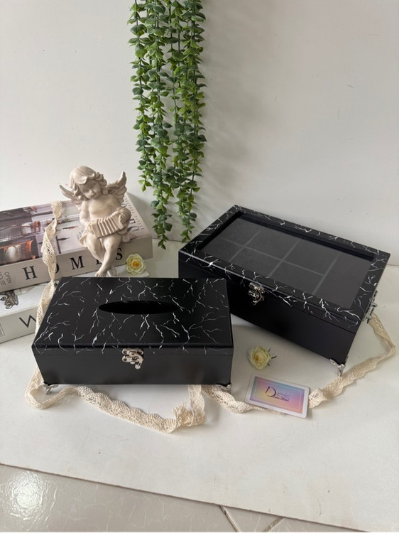 جادستمال کاغذی مشکی با طرح سنگ مرمر