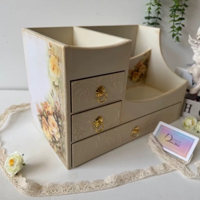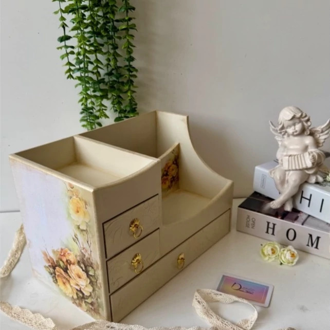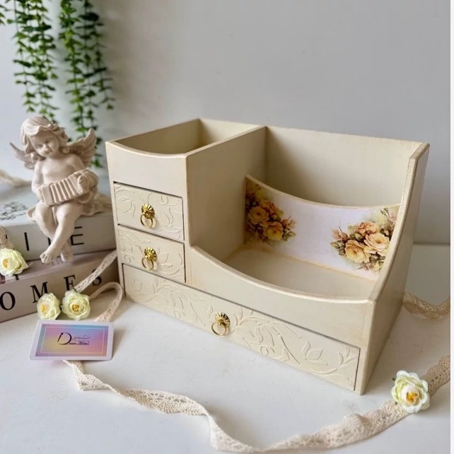 استند لوازم آرایش کرم طلایی چوبی