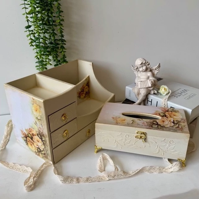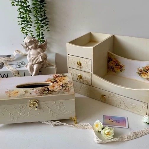 استند لوازم آرایش کرم طلایی چوبی