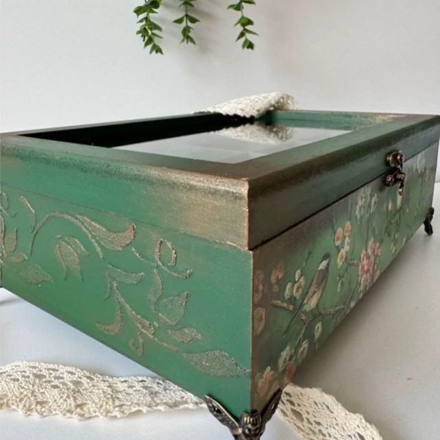 جعبه پذیرایی ، تی بگ در شیشه ای رنگ سبز تیره
