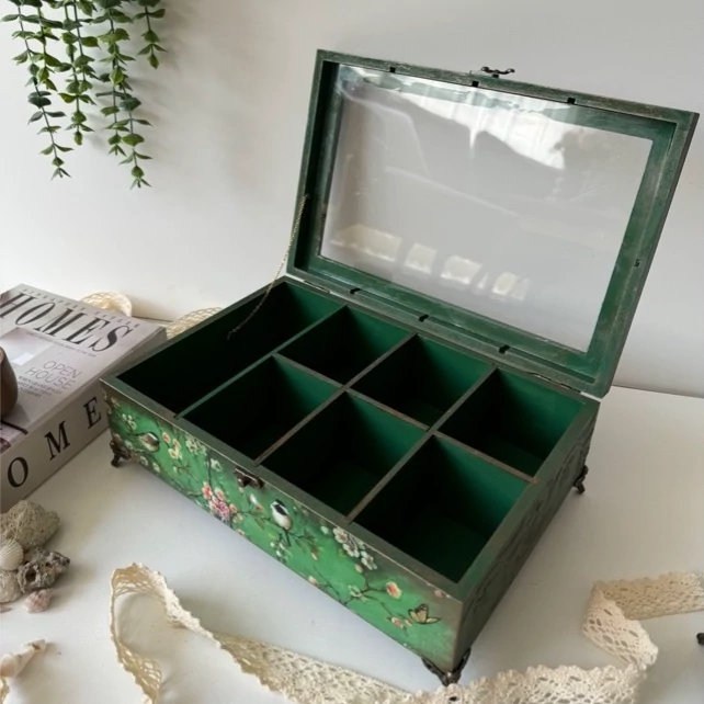 جعبه پذیرایی ، تی بگ در شیشه ای رنگ سبز تیره